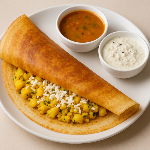 This dosa is filled with a delicious combination of potato masala and soft paneer, giving you a creamy, satisfying taste with every bite.